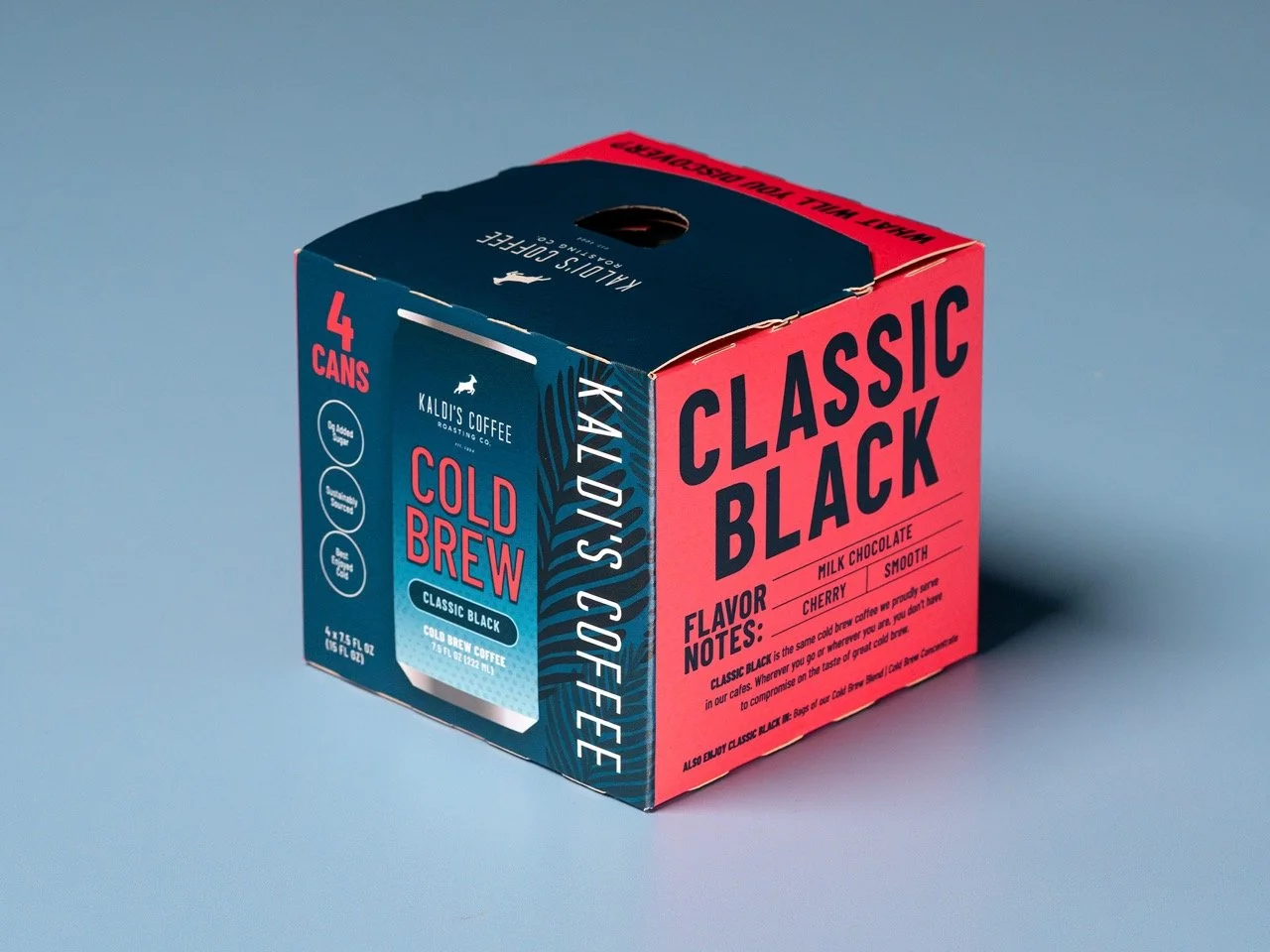 With the introduction of this 7.5oz, shelf-stable cold brew can, Kaldi’s Coffee started down a new path in the marketplace, with Gen Z in mind. Crisp and bright, both the coffee inside and the label wrapped around it provides a jolt of energy, iciness, and an on-the-go companion.